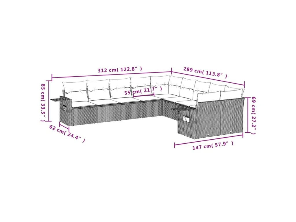 Tato zahradní sedací souprava je dokonalým doplňkem vaší zahrady, terasy nebo dvorku a poskytne vám pohodlné a příjemné místo, kde si můžete povídat s rodinou a přáteli nebo jen tak odpočívat a užívat si pobyt venku.
