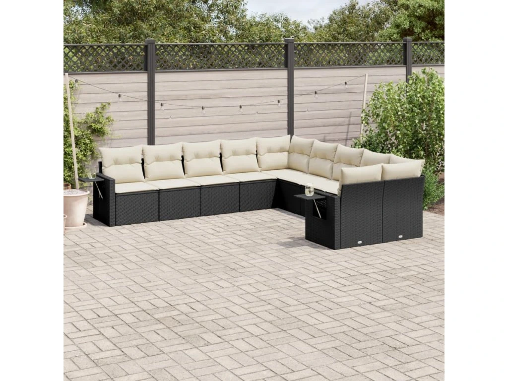 10dílná zahradní sedací souprava s poduškami černá polyratan 3220705