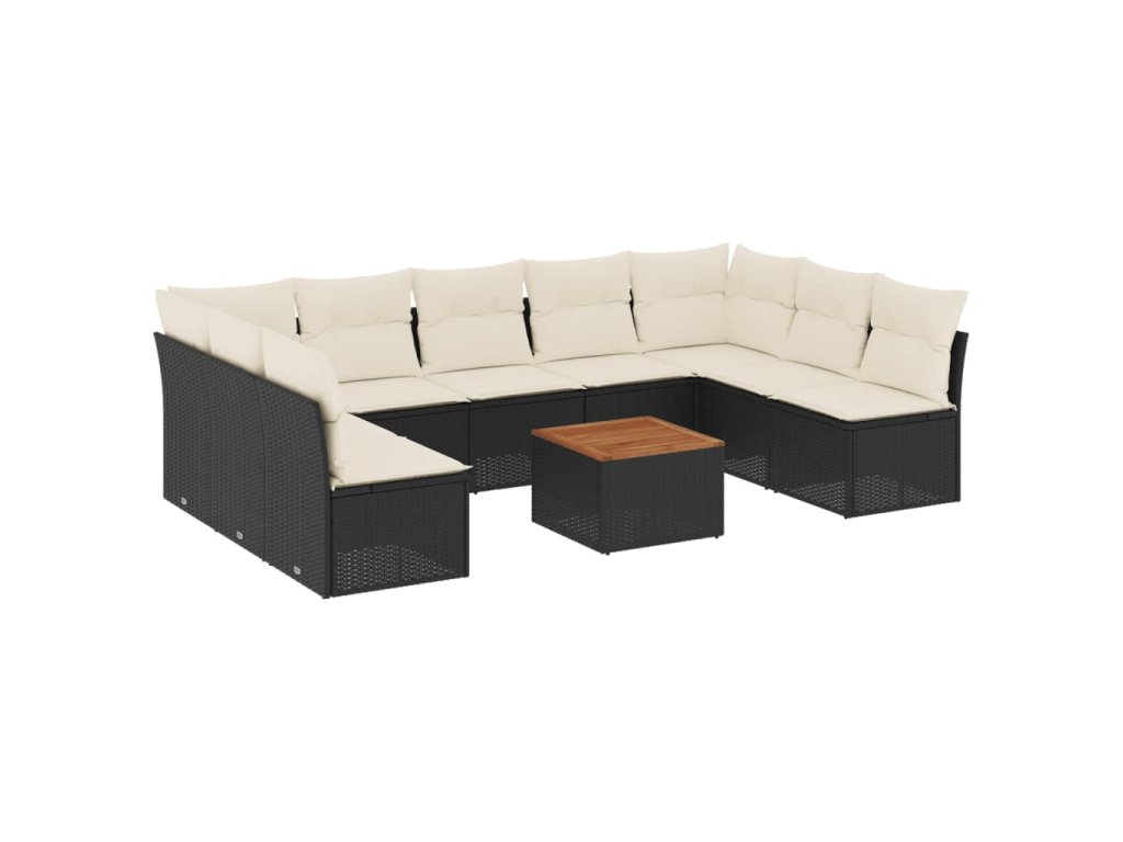 10dílná zahradní sedací souprava s poduškami černá polyratan 3223788