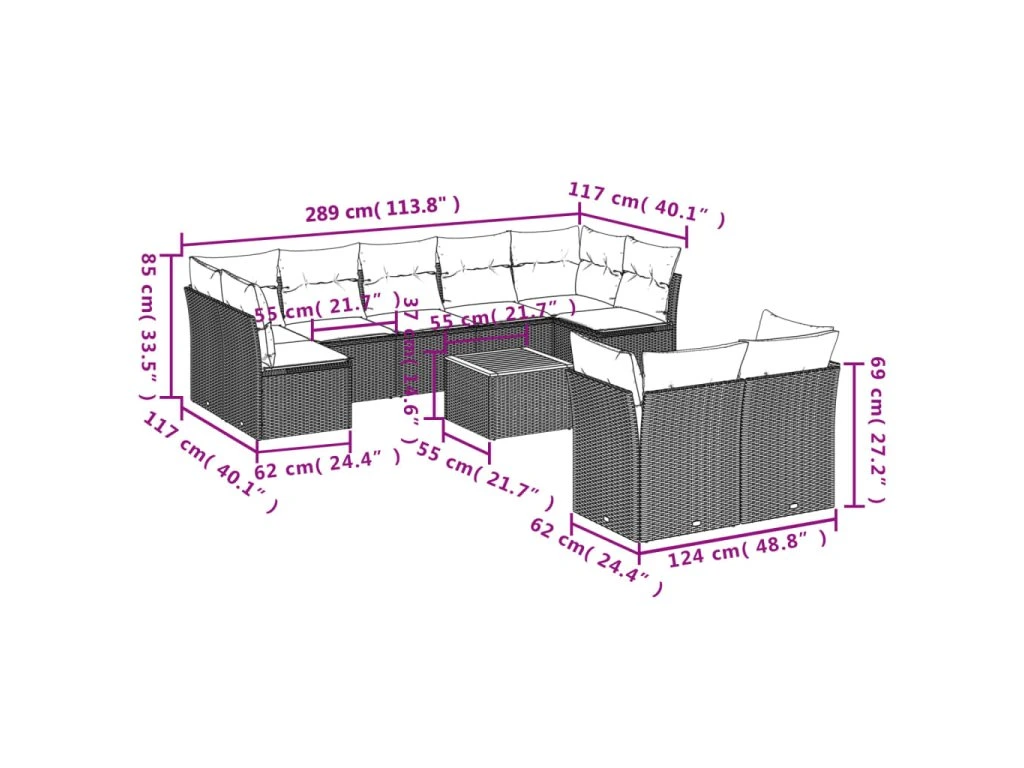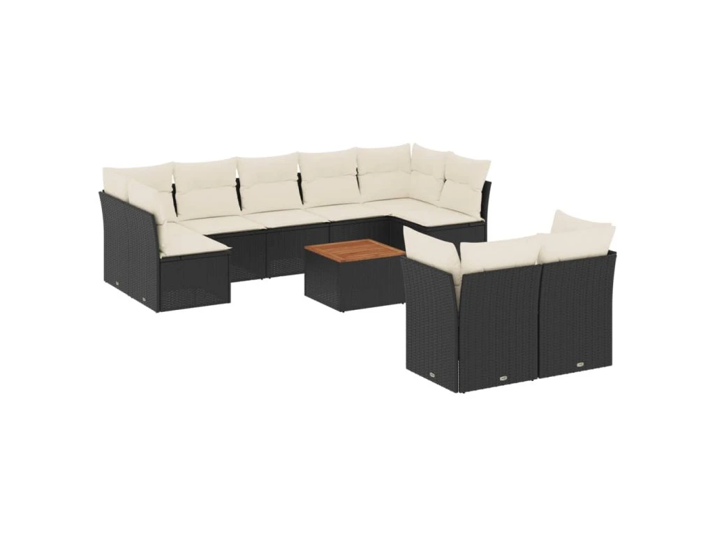 10dílná zahradní sedací souprava s poduškami černá polyratan 3223809