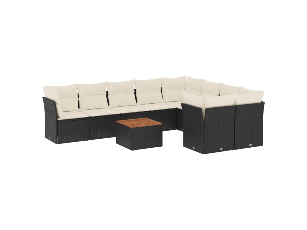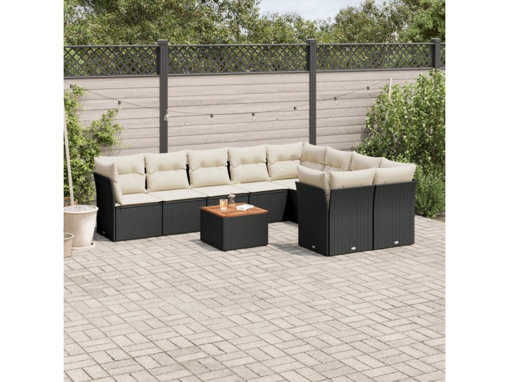 10dílná zahradní sedací souprava s poduškami černá polyratan 3223816