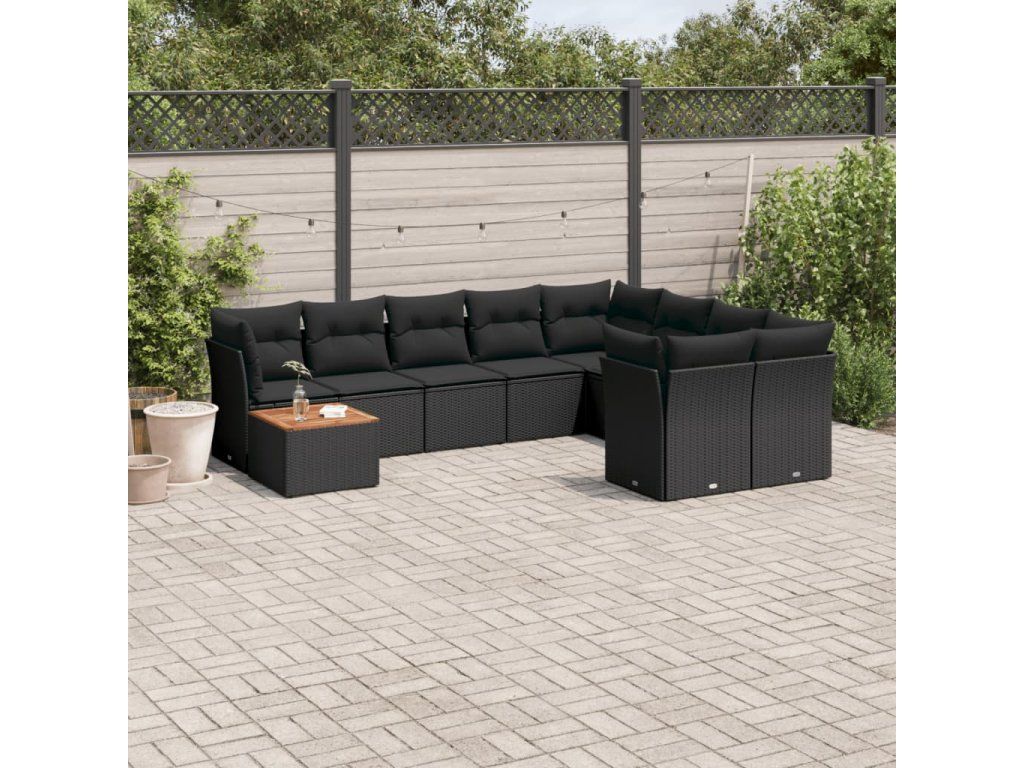 10dílná zahradní sedací souprava s poduškami černá polyratan 3223822