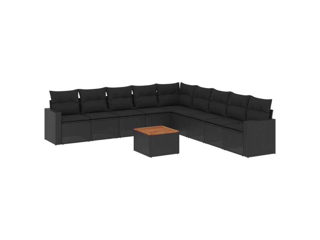 10dílná zahradní sedací souprava s poduškami černá polyratan 3224165