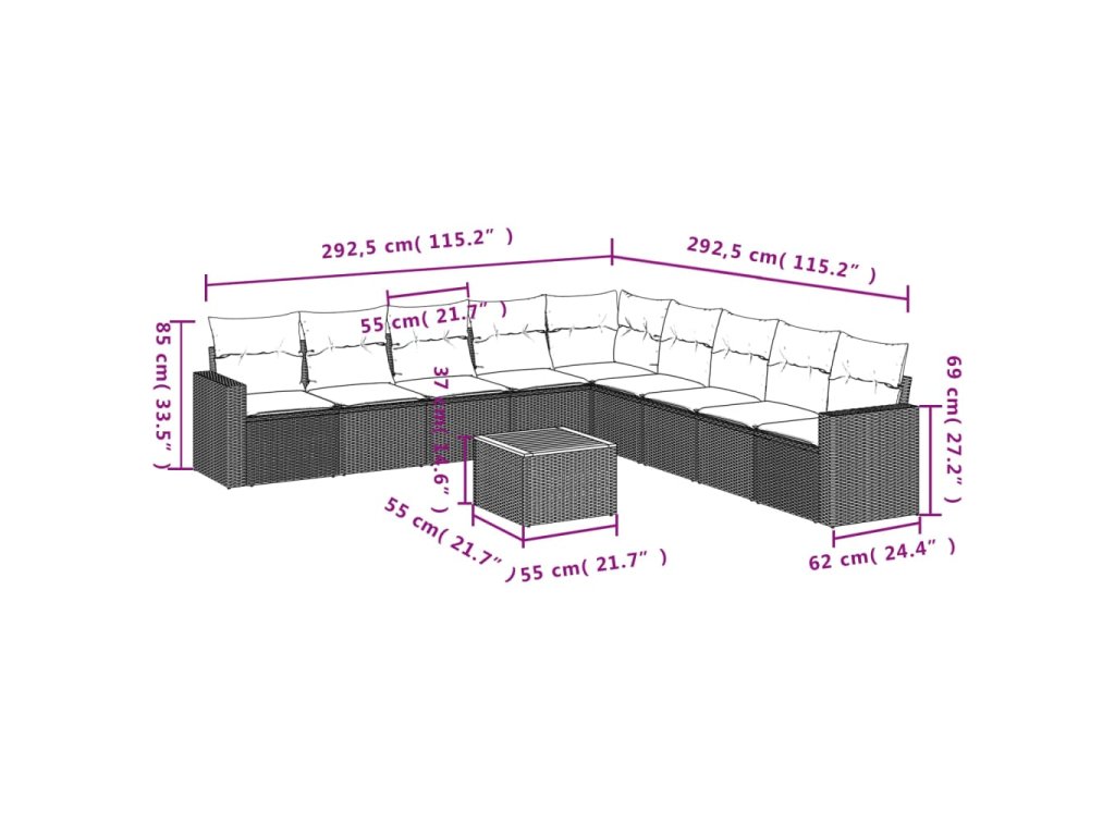 Tato zahradní sedací souprava je dokonalým doplňkem vaší zahrady, terasy nebo dvorku a poskytne vám pohodlné a příjemné místo, kde si můžete povídat s rodinou a přáteli nebo jen tak odpočívat a užívat si pobyt venku.