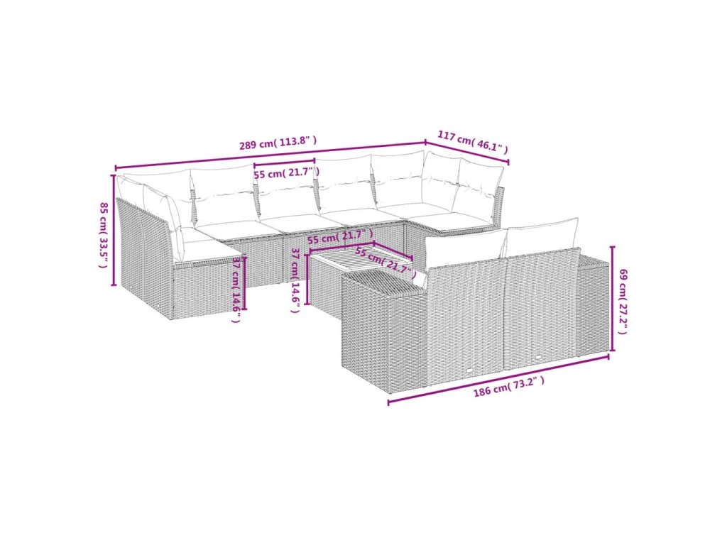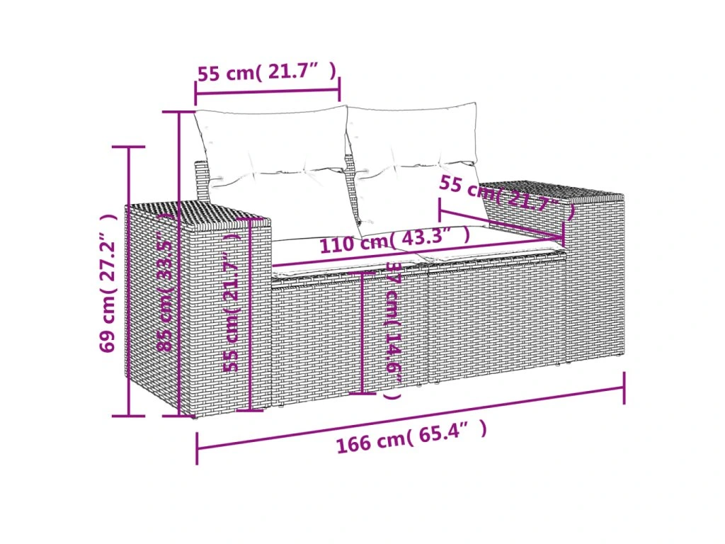 Tato zahradní sedací souprava je dokonalým doplňkem vaší zahrady, terasy nebo dvorku a poskytne vám pohodlné a příjemné místo, kde si můžete povídat s rodinou a přáteli nebo jen tak odpočívat a užívat si pobyt venku.