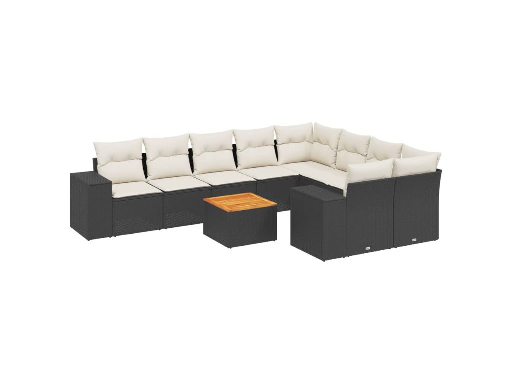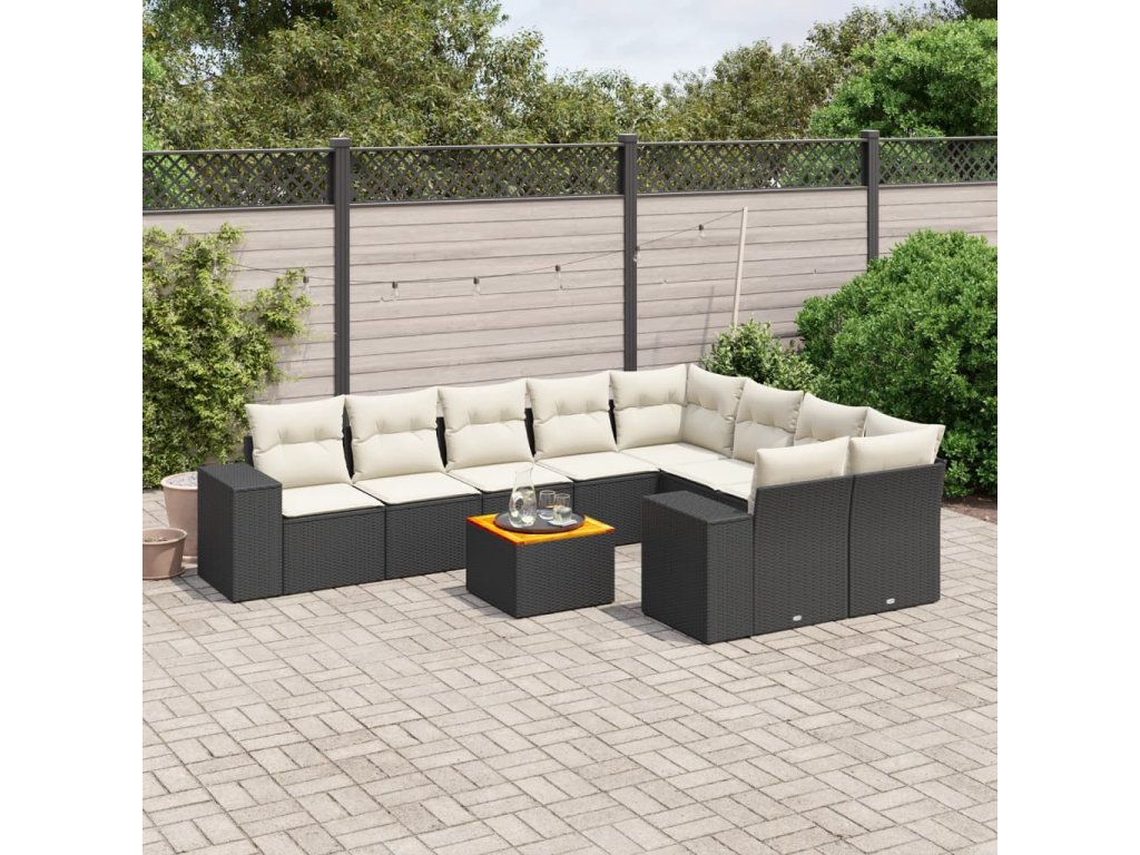 10dílná zahradní sedací souprava s poduškami černá polyratan 3225601