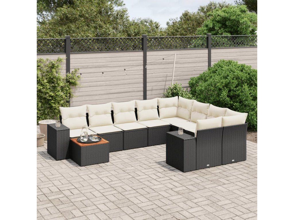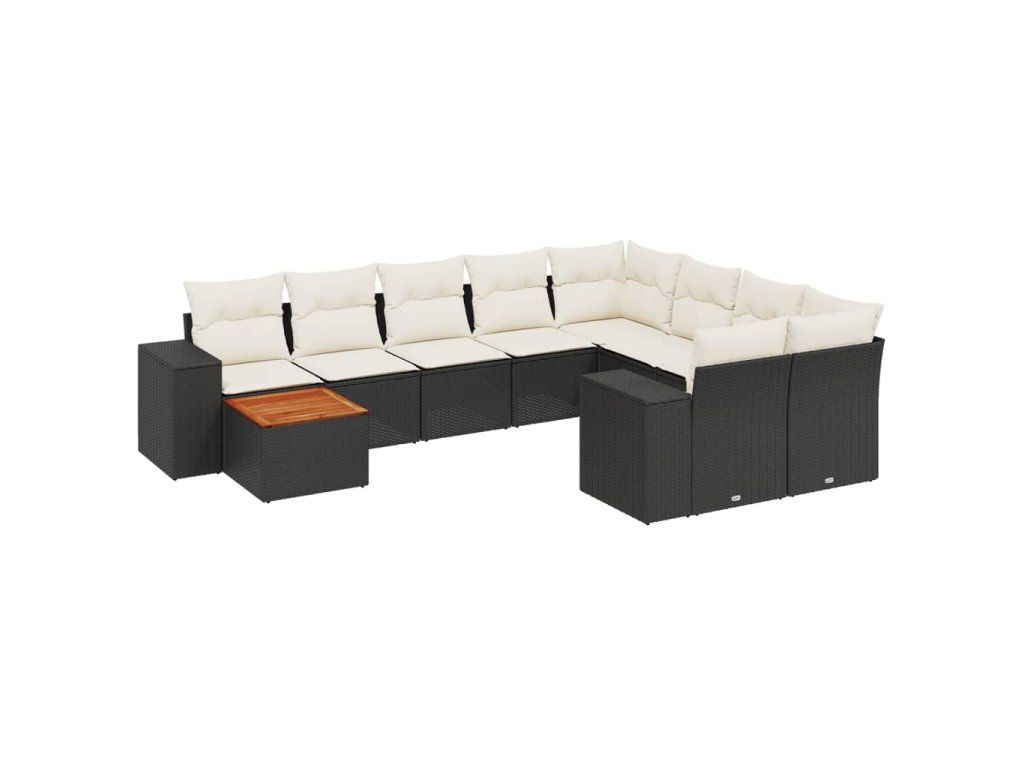 10dílná zahradní sedací souprava s poduškami černá polyratan 3225608