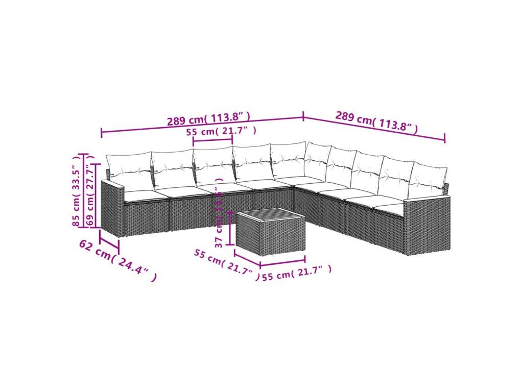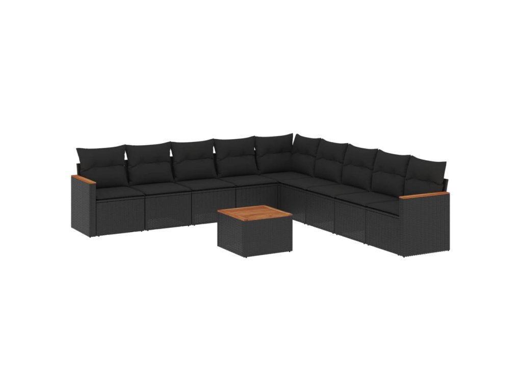 10dílná zahradní sedací souprava s poduškami černá polyratan 3226062