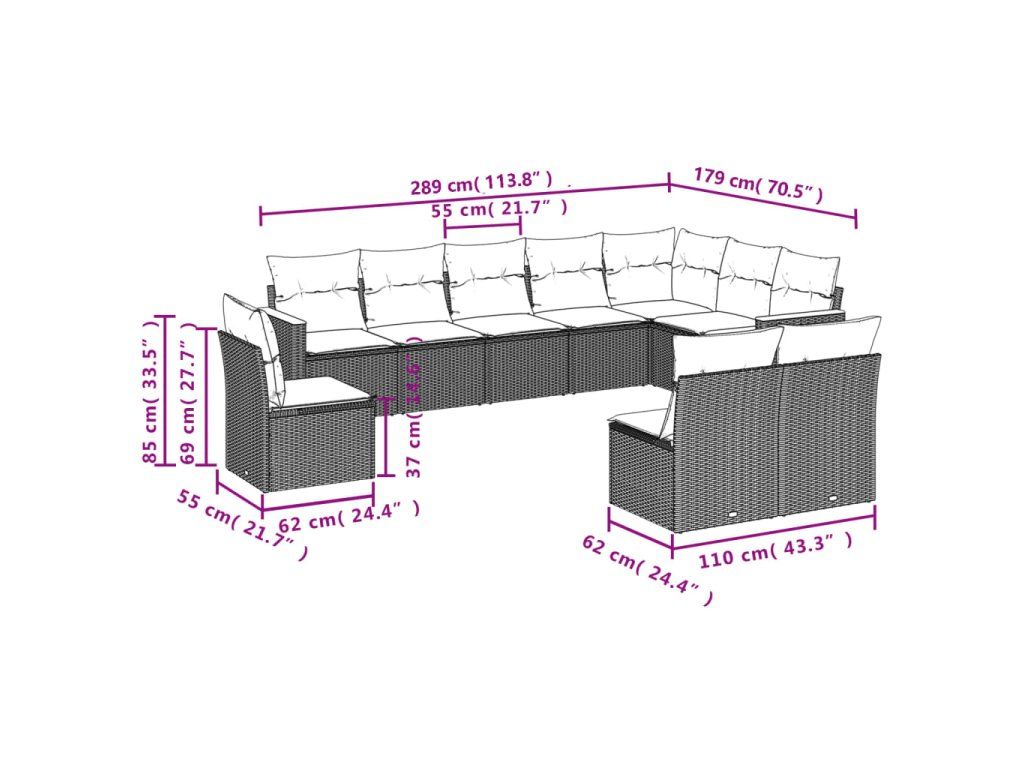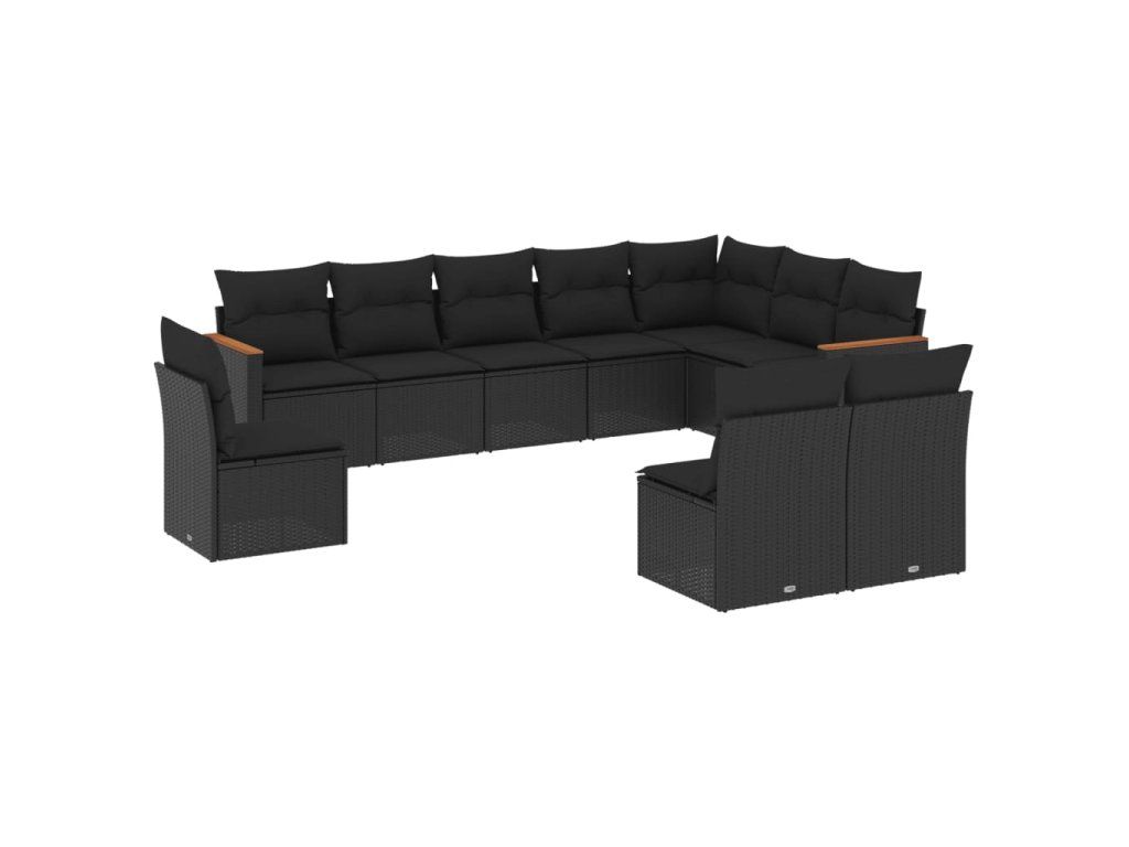 10dílná zahradní sedací souprava s poduškami černá polyratan 3226069