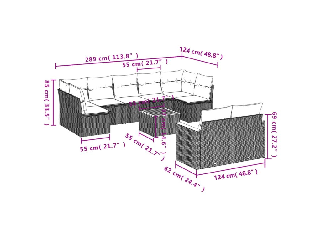 10dílná zahradní sedací souprava s poduškami černá polyratan 3226294