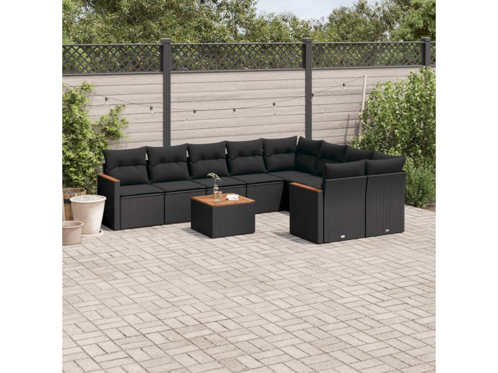 10dílná zahradní sedací souprava s poduškami černá polyratan 3226307
