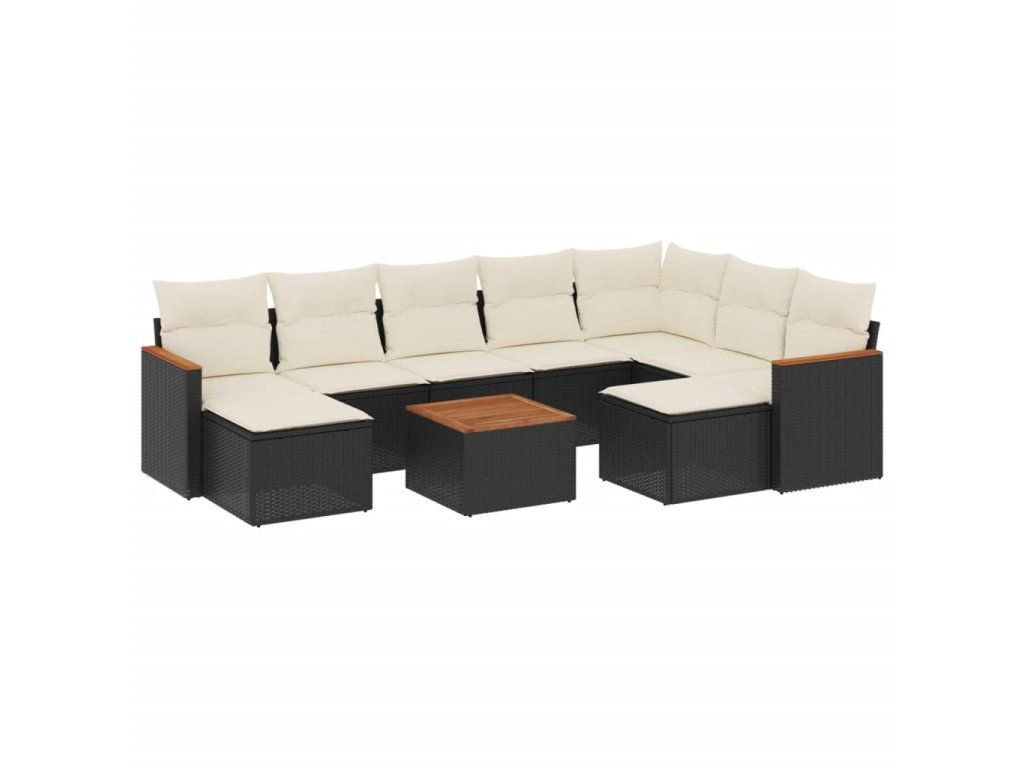 10dílná zahradní sedací souprava s poduškami černá polyratan 3226546