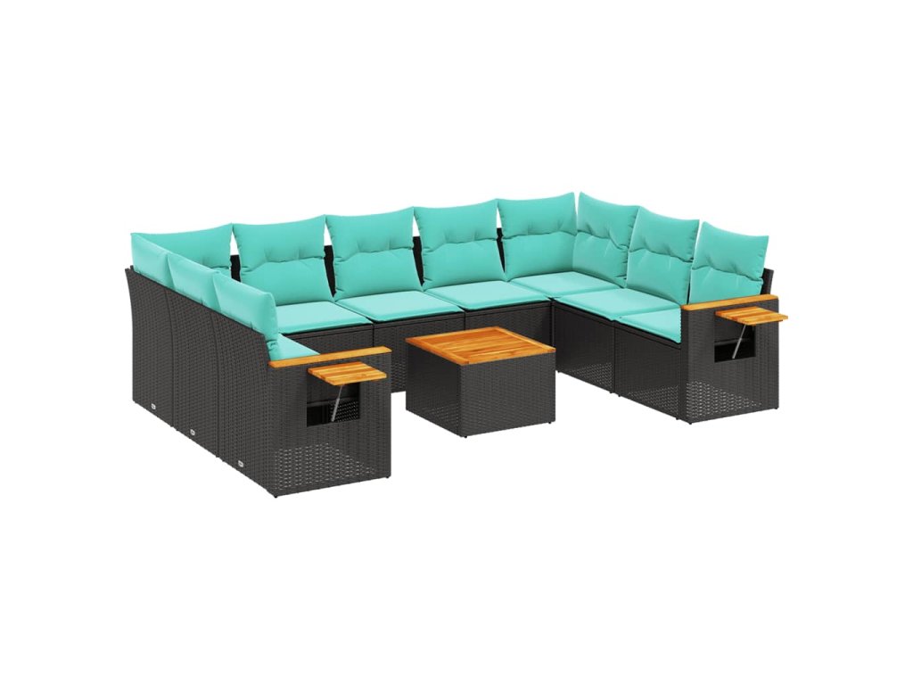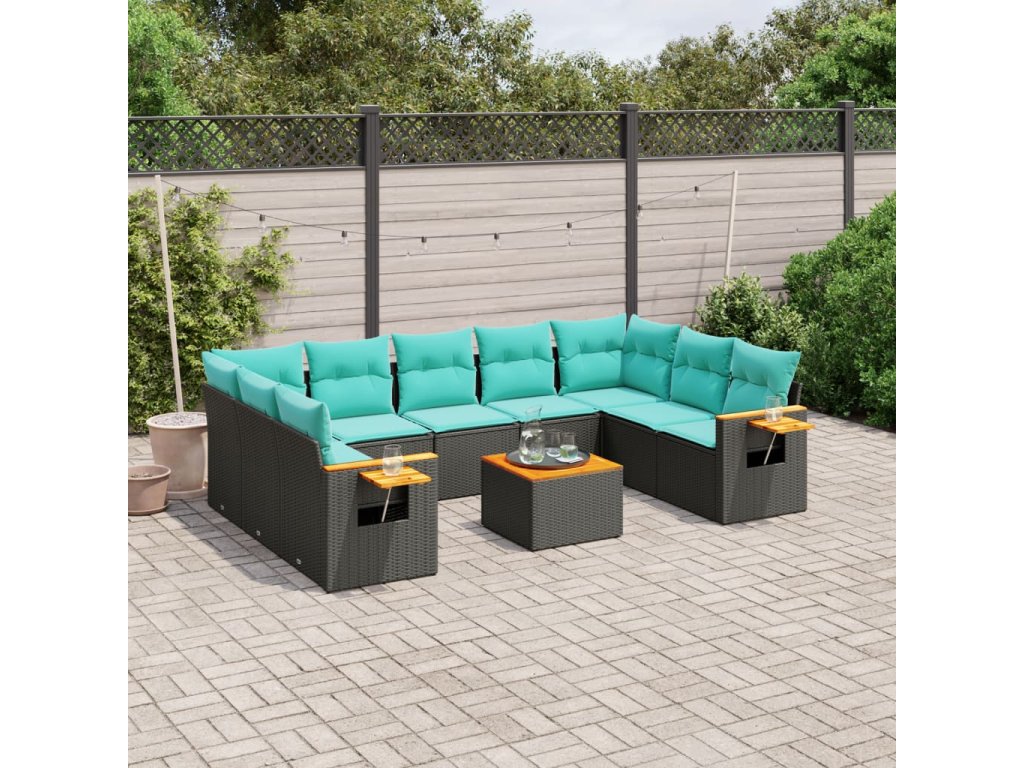 10dílná zahradní sedací souprava s poduškami černá polyratan 3227121
