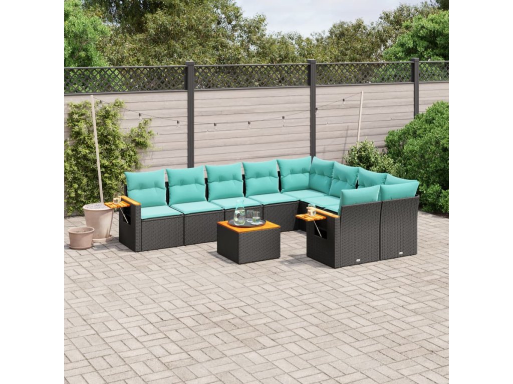 10dílná zahradní sedací souprava s poduškami černá polyratan 3227149