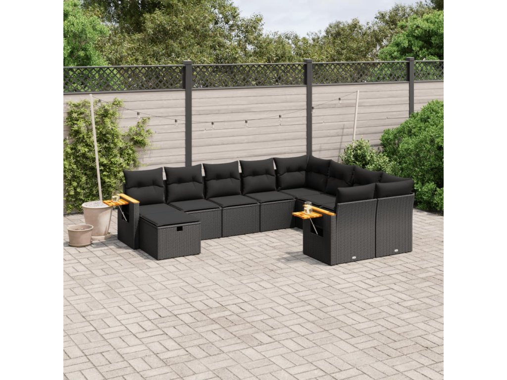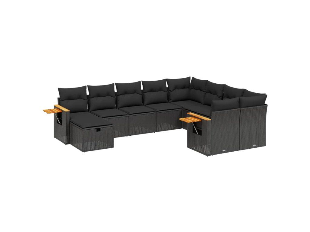 10dílná zahradní sedací souprava s poduškami černá polyratan 3227154