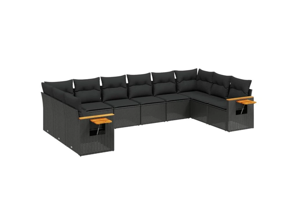 10dílná zahradní sedací souprava s poduškami černá polyratan 3227161