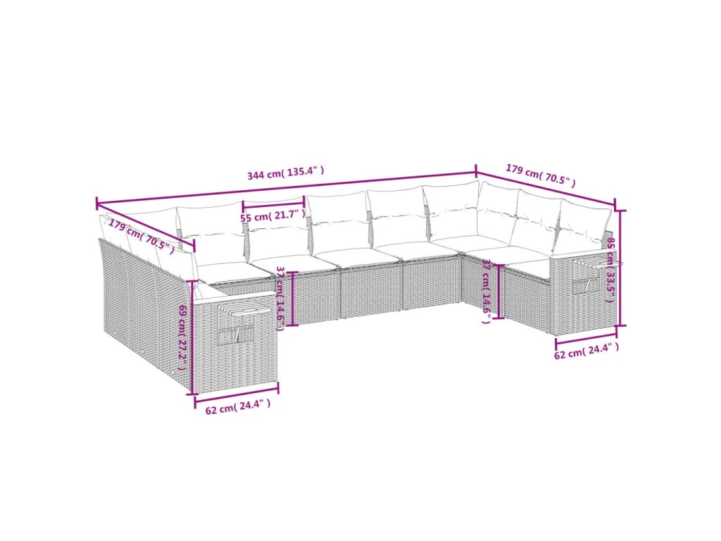 Tato zahradní sedací souprava je dokonalým doplňkem vaší zahrady, terasy nebo dvorku a poskytne vám pohodlné a příjemné místo, kde si můžete povídat s rodinou a přáteli nebo jen tak odpočívat a užívat si pobyt venku.