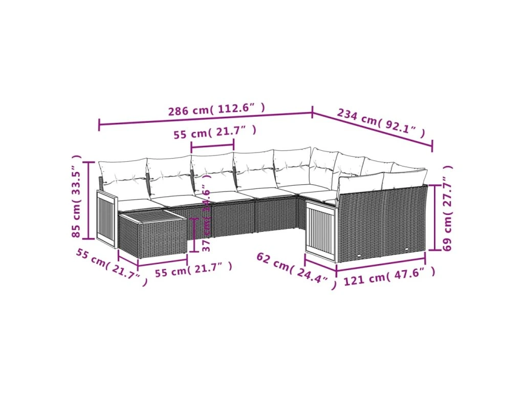 Tato zahradní sedací souprava je dokonalým doplňkem vaší zahrady, terasy nebo dvorku a poskytne vám pohodlné a příjemné místo, kde si můžete povídat s rodinou a přáteli nebo jen tak odpočívat a užívat si pobyt venku.