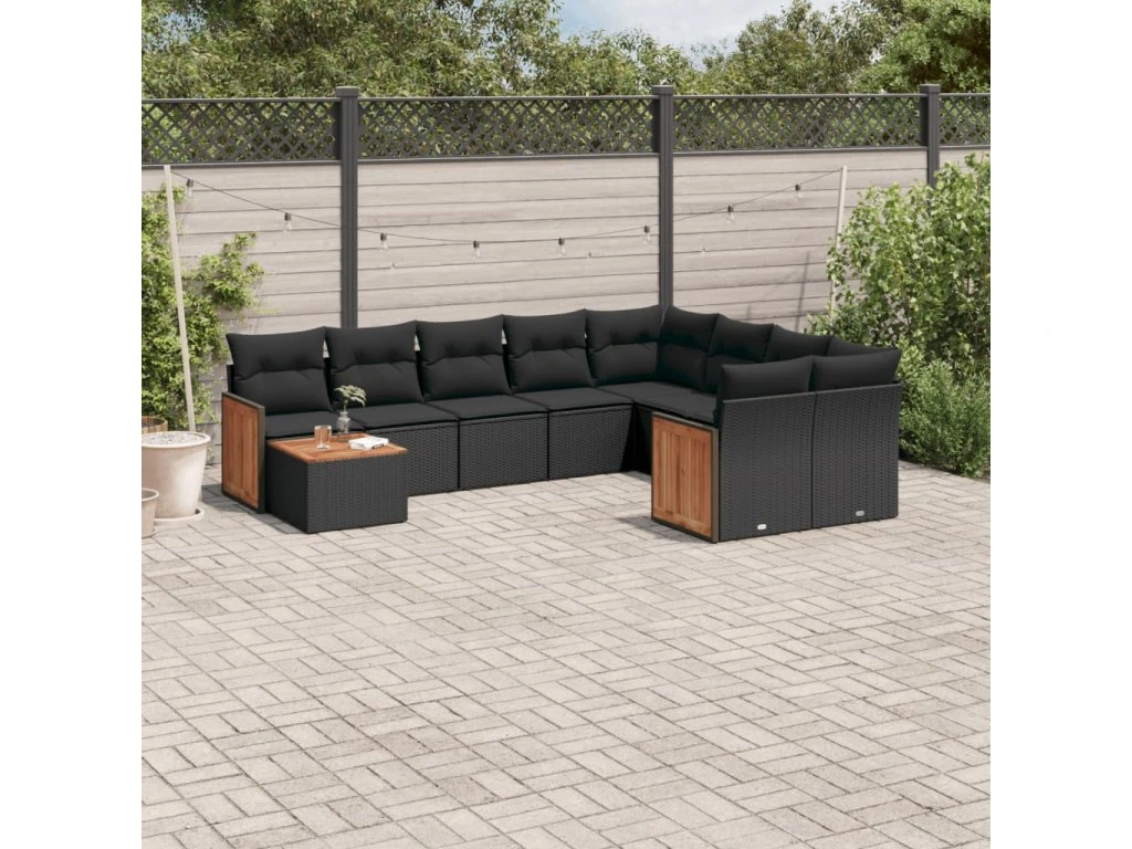 10dílná zahradní sedací souprava s poduškami černá polyratan 3227994