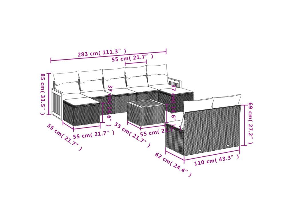 Tato zahradní sedací souprava je dokonalým doplňkem vaší zahrady, terasy nebo dvorku a poskytne vám pohodlné a příjemné místo, kde si můžete povídat s rodinou a přáteli nebo jen tak odpočívat a užívat si pobyt venku.