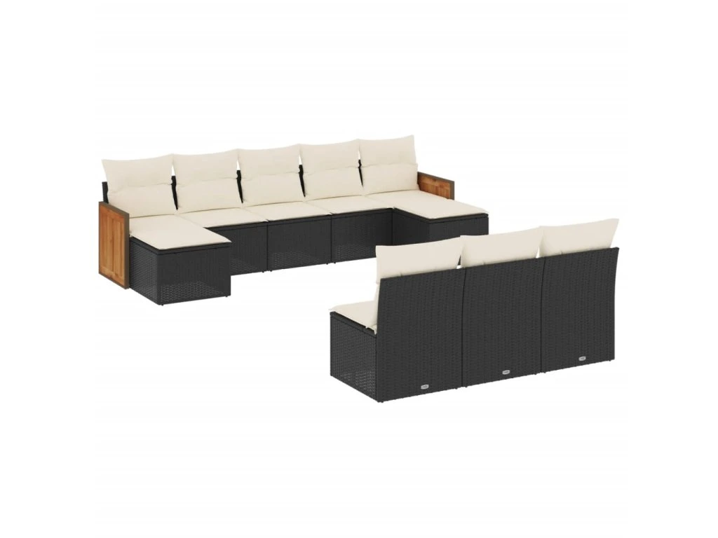 10dílná zahradní sedací souprava s poduškami černá polyratan 3228065