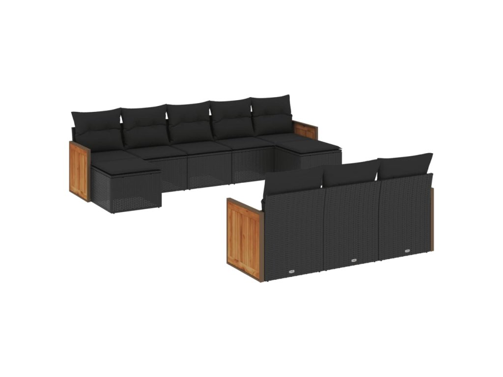 10dílná zahradní sedací souprava s poduškami černá polyratan 3228092