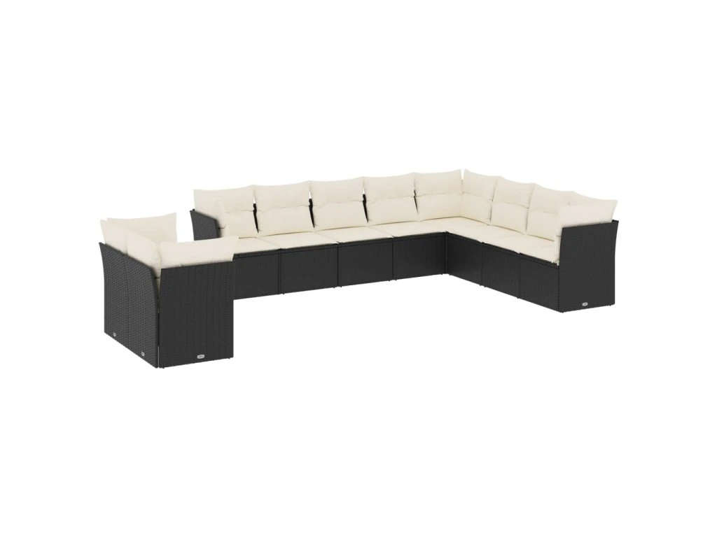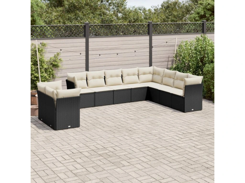 10dílná zahradní sedací souprava s poduškami černá polyratan 3249695