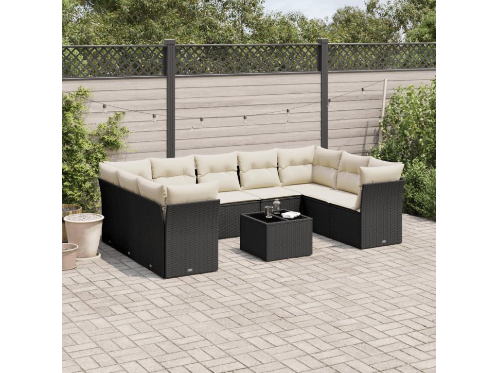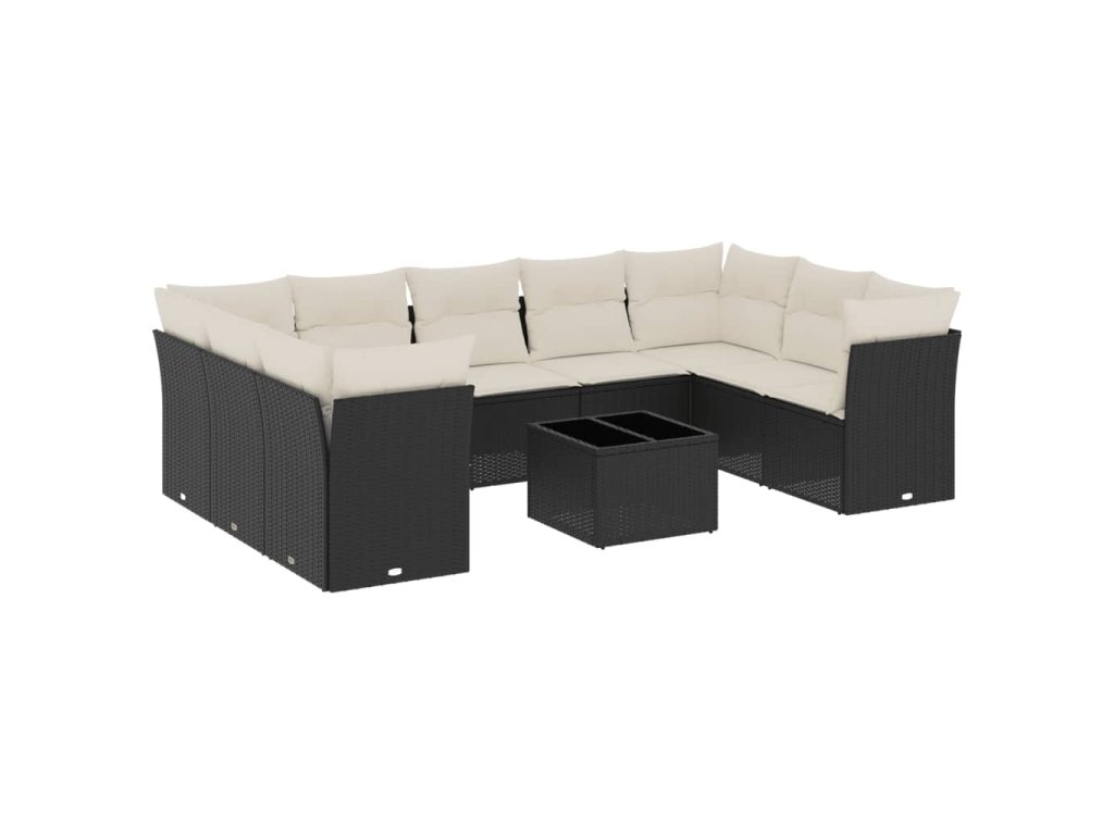 10dílná zahradní sedací souprava s poduškami černá polyratan 3249975