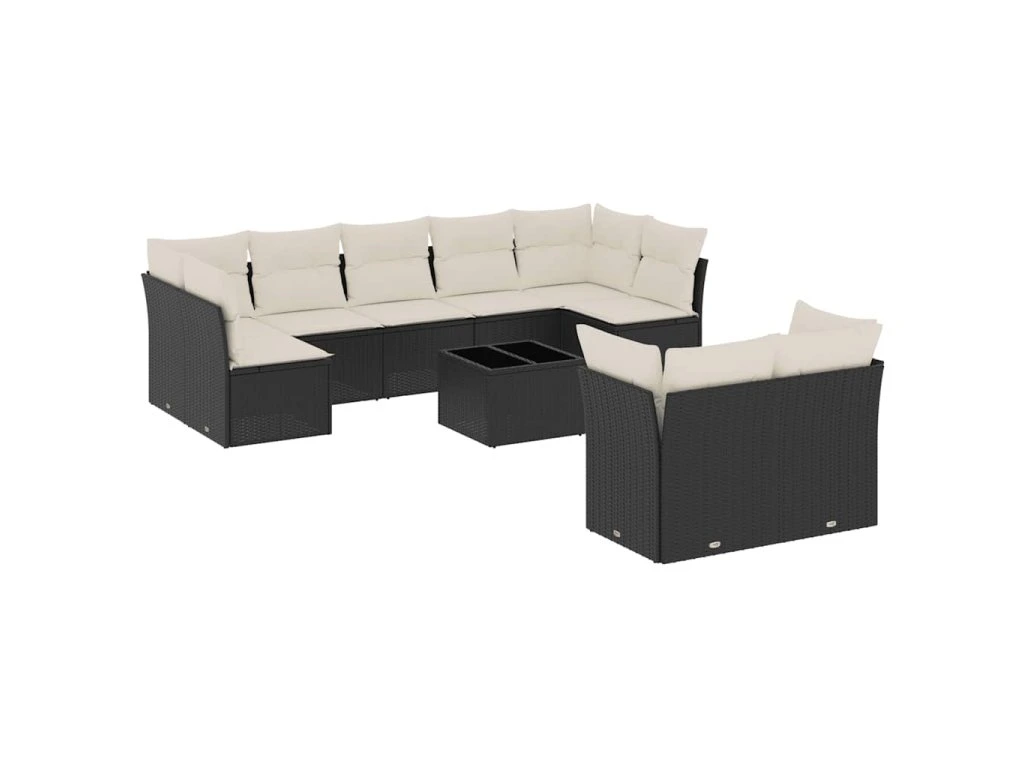 10dílná zahradní sedací souprava s poduškami černá polyratan 3249995