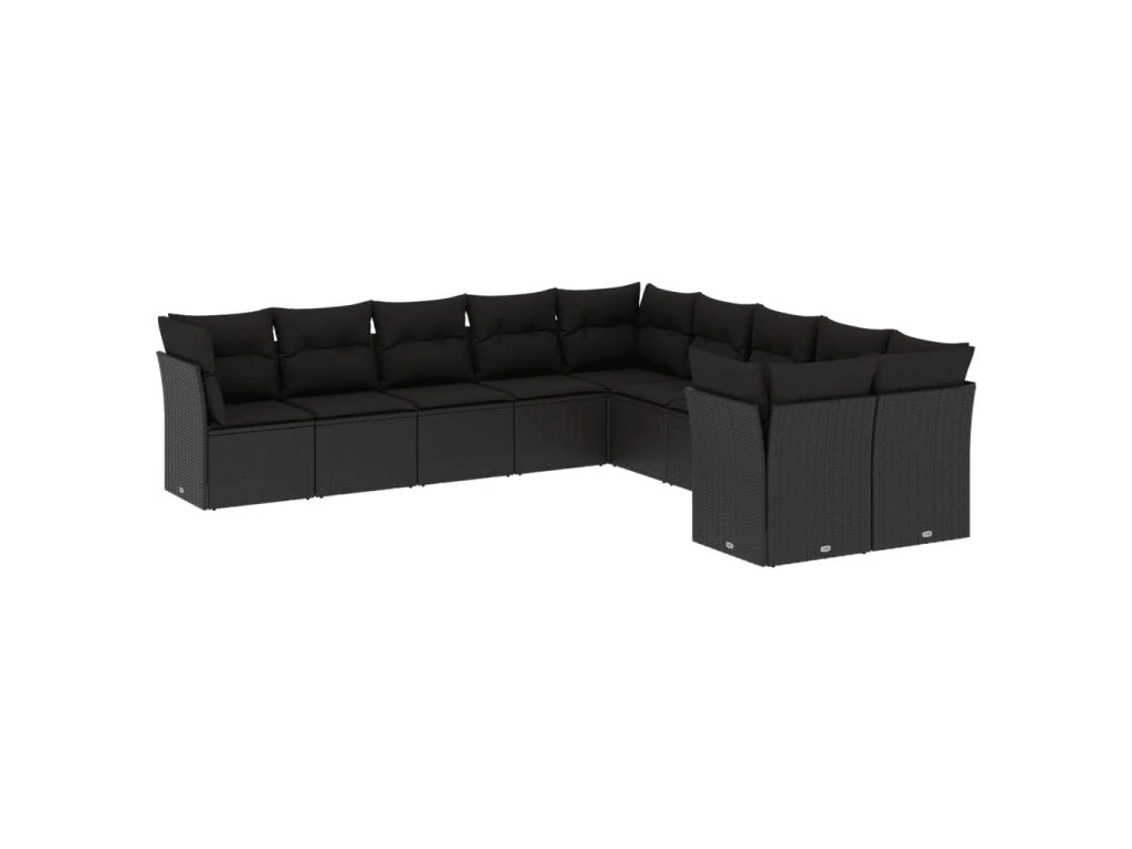 10dílná zahradní sedací souprava s poduškami černá polyratan 3250074