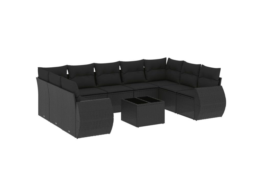 10dílná zahradní sedací souprava s poduškami černá polyratan 3254142