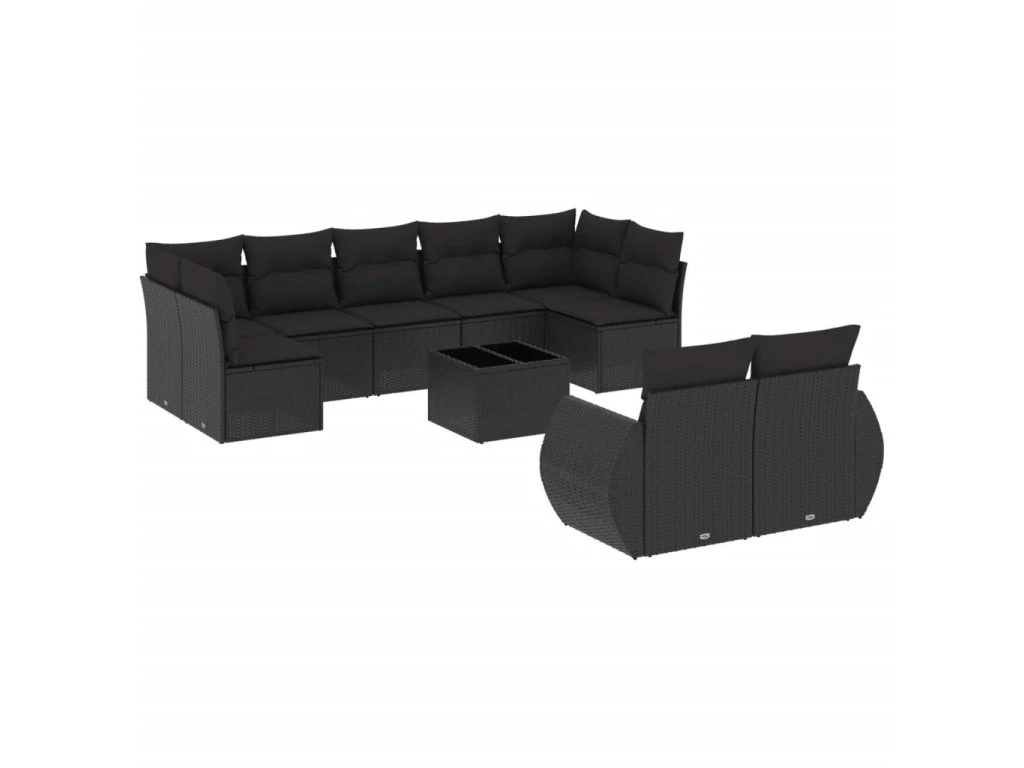 10dílná zahradní sedací souprava s poduškami černá polyratan 3254162