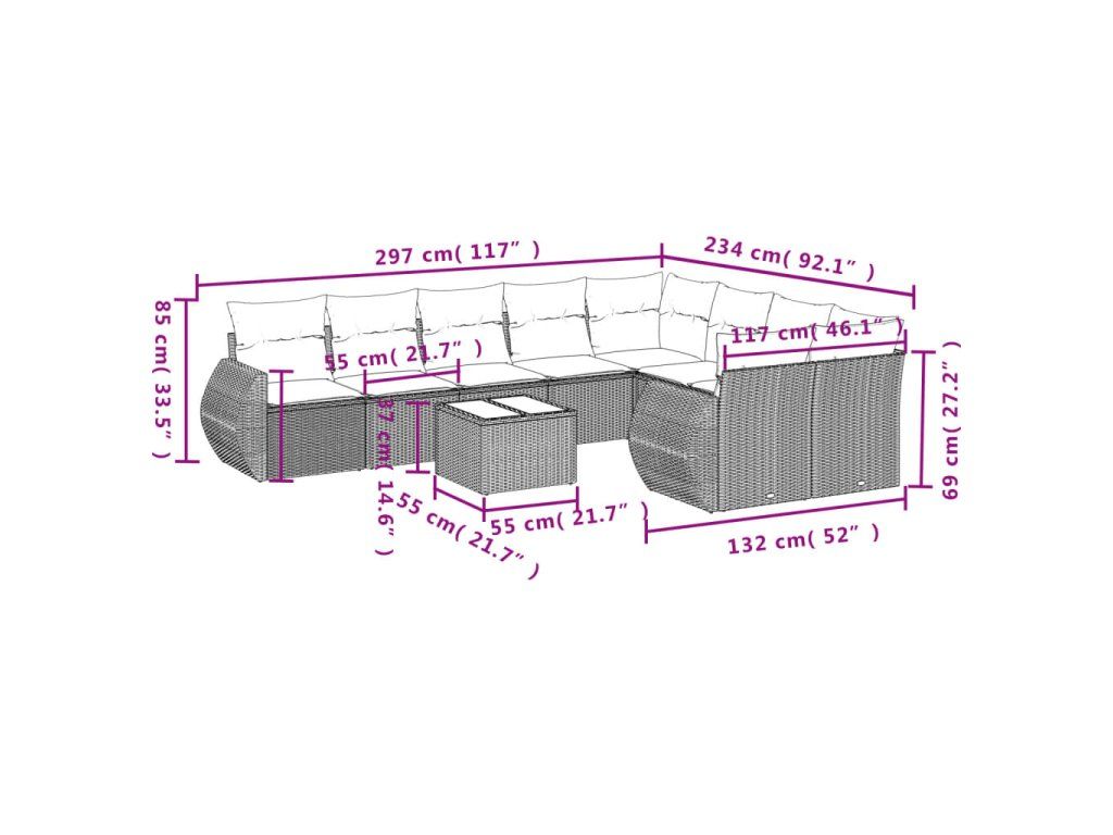 10dílná zahradní sedací souprava s poduškami černá polyratan 3254182