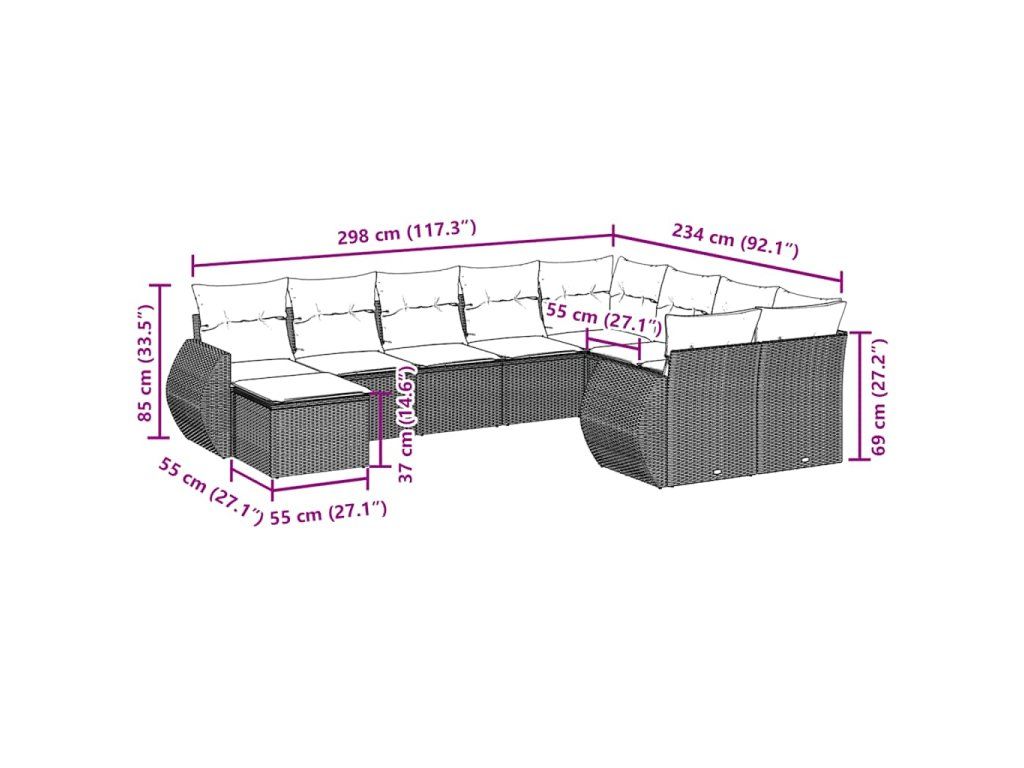 10dílná zahradní sedací souprava s poduškami černá polyratan 3254193