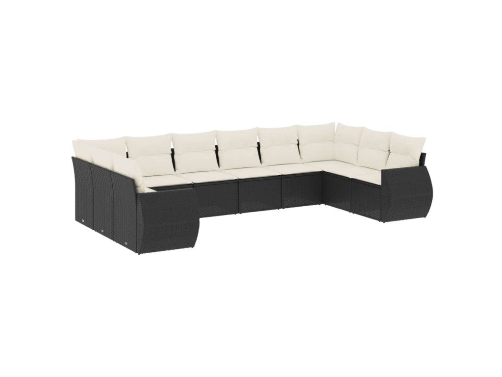 10dílná zahradní sedací souprava s poduškami černá polyratan 3254203