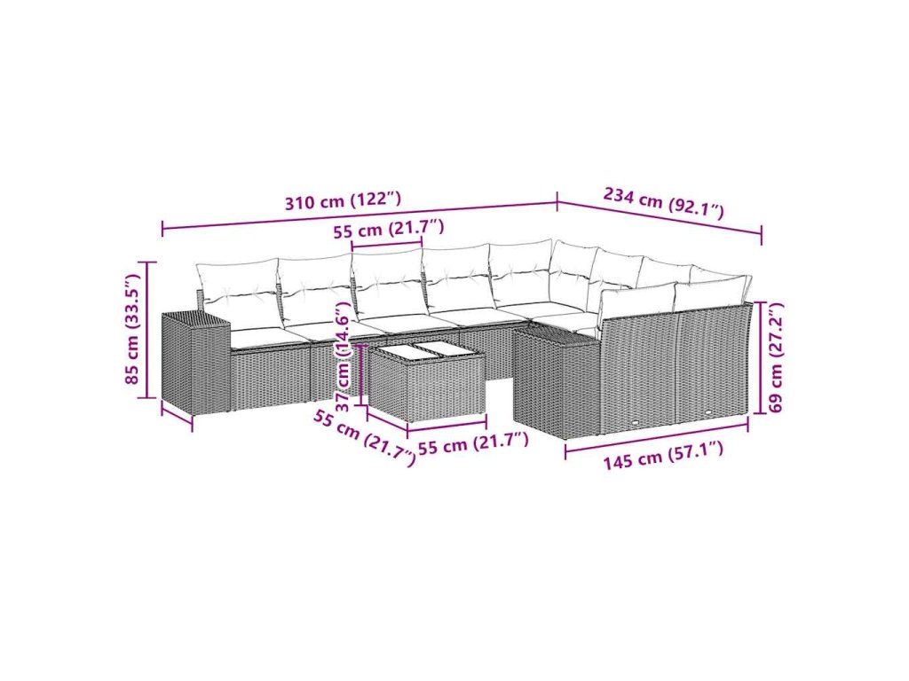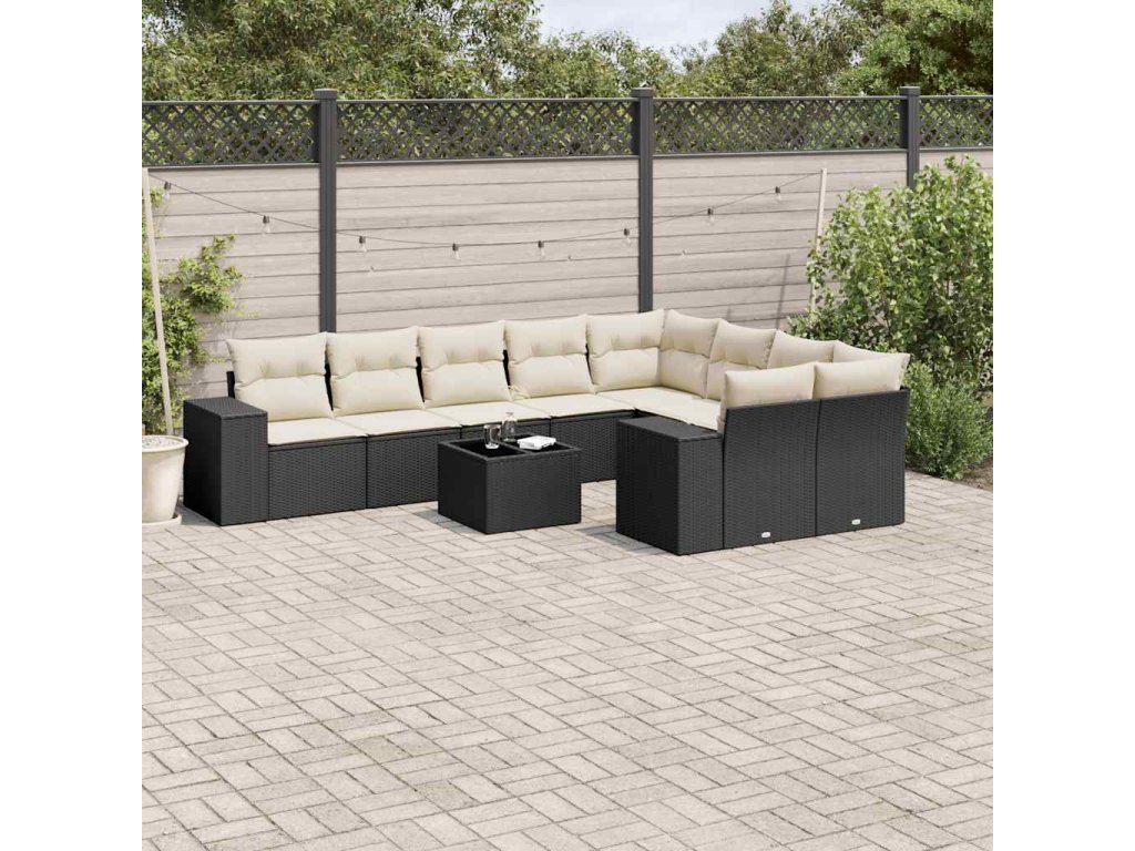 10dílná zahradní sedací souprava s poduškami černá polyratan 3255383