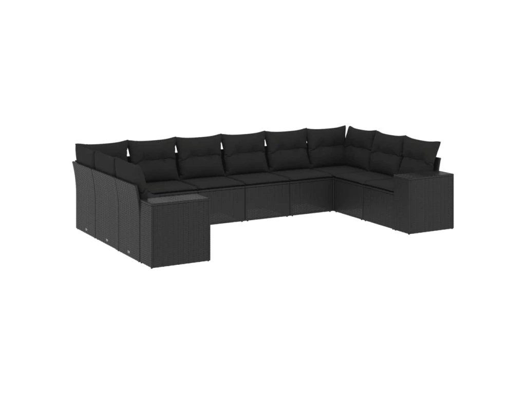 10dílná zahradní sedací souprava s poduškami černá polyratan 3255402