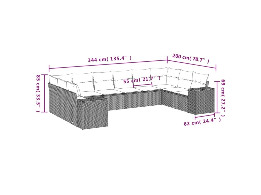 Tato zahradní sedací souprava je dokonalým doplňkem vaší zahrady, terasy nebo dvorku a poskytne vám pohodlné a příjemné místo, kde si můžete povídat s rodinou a přáteli nebo jen tak odpočívat a užívat si pobyt venku.