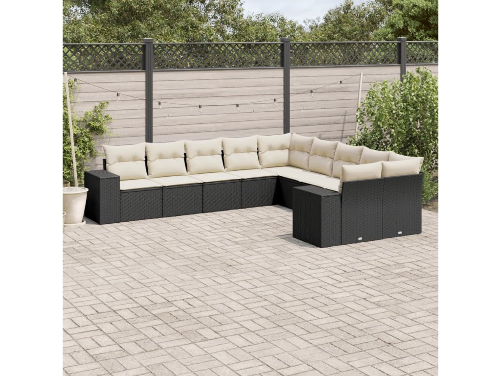 10dílná zahradní sedací souprava s poduškami černá polyratan 3255443
