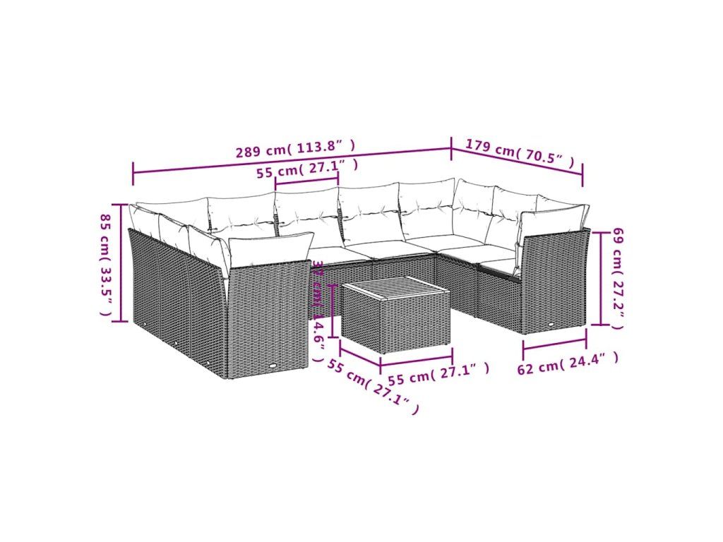 10dílná zahradní sedací souprava s poduškami černá polyratan 3256133
