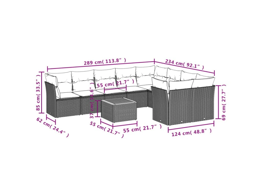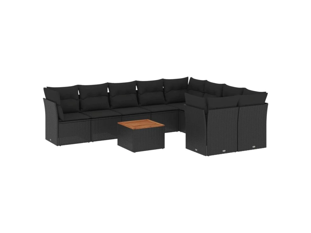 10dílná zahradní sedací souprava s poduškami černá polyratan 3256146