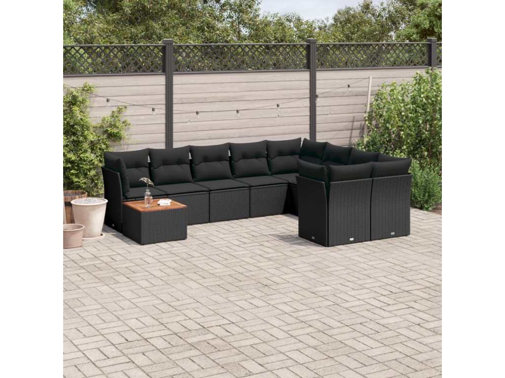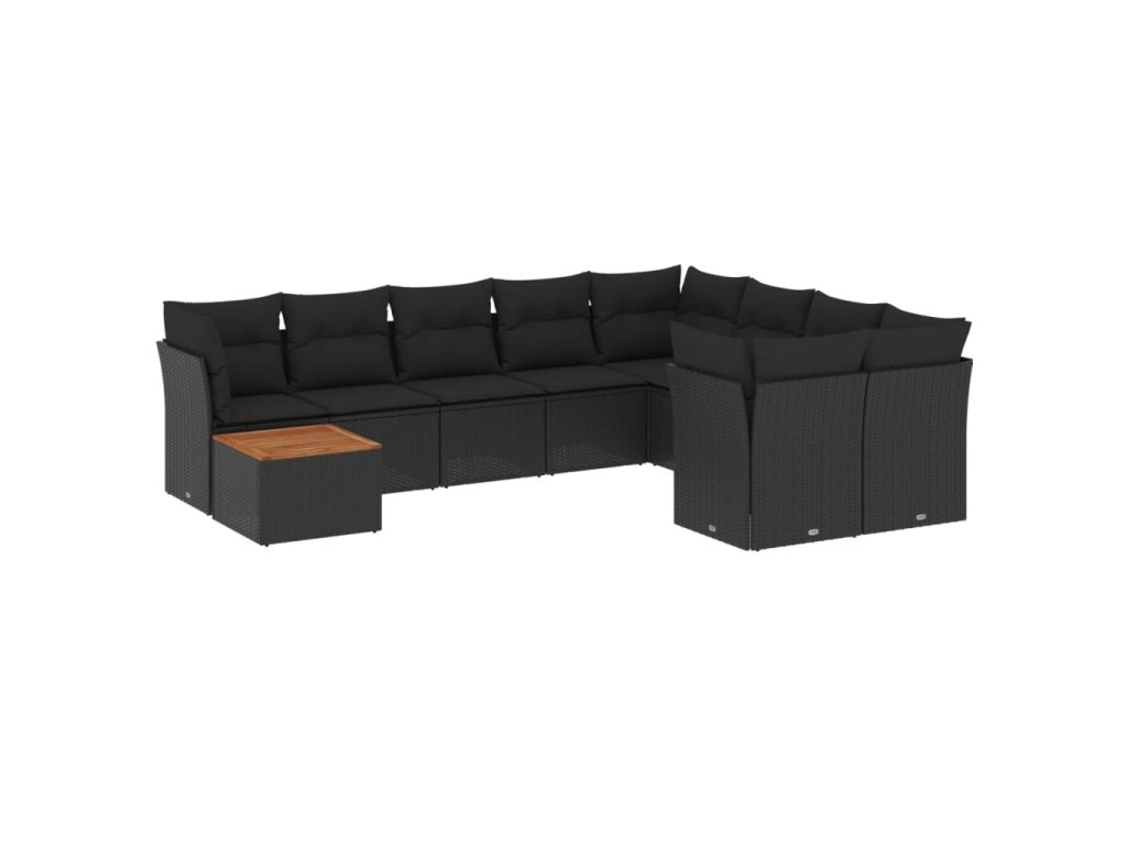 10dílná zahradní sedací souprava s poduškami černá polyratan 3256153