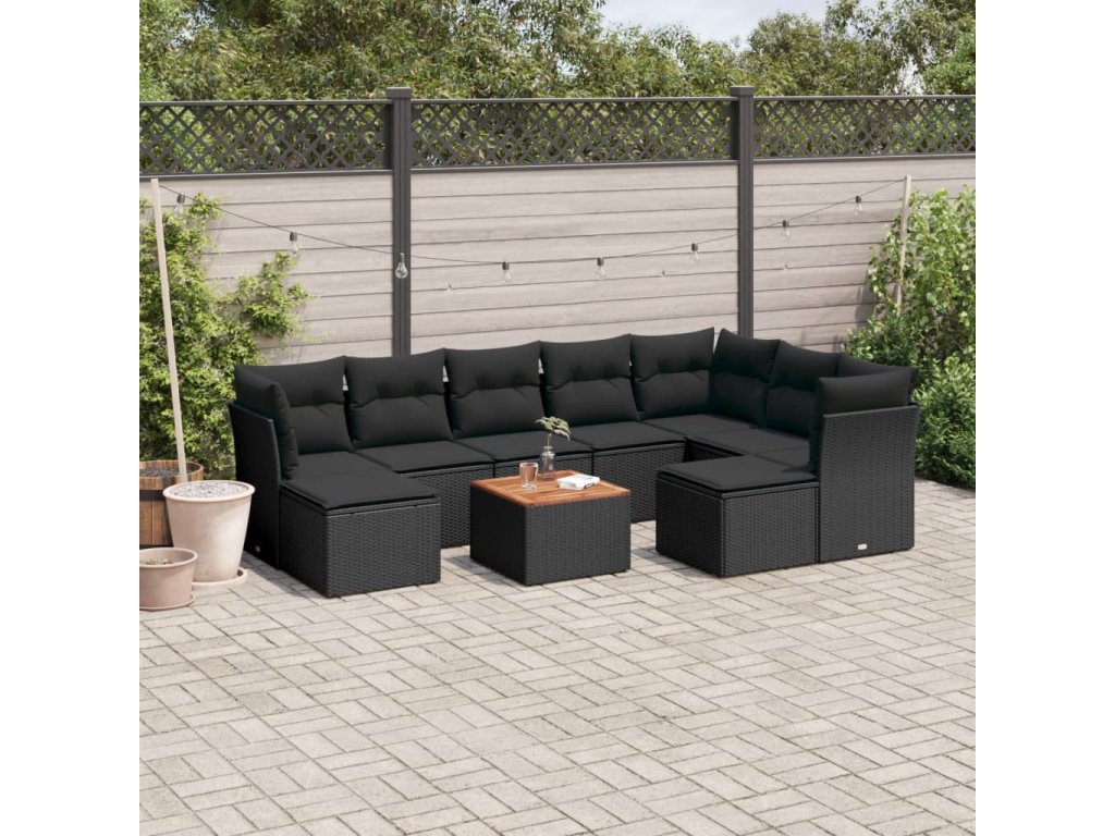 10dílná zahradní sedací souprava s poduškami černá polyratan 3256293