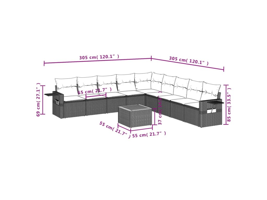 10dílná zahradní sedací souprava s poduškami černá polyratan 3256938