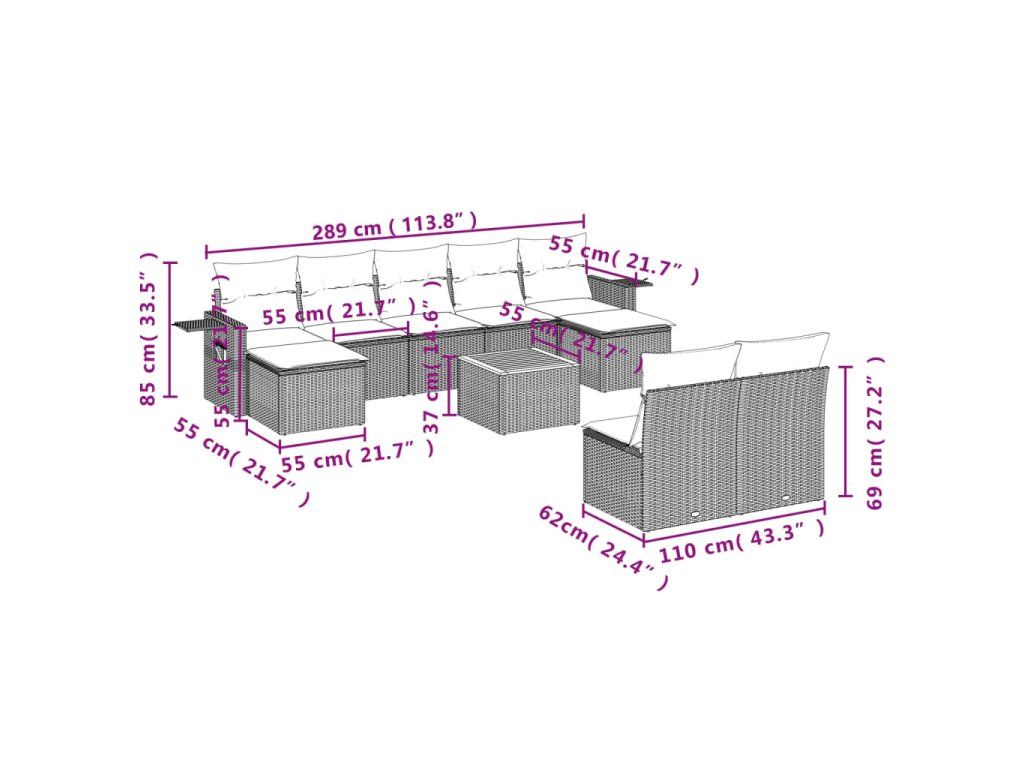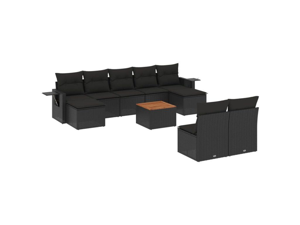 10dílná zahradní sedací souprava s poduškami černá polyratan 3257091