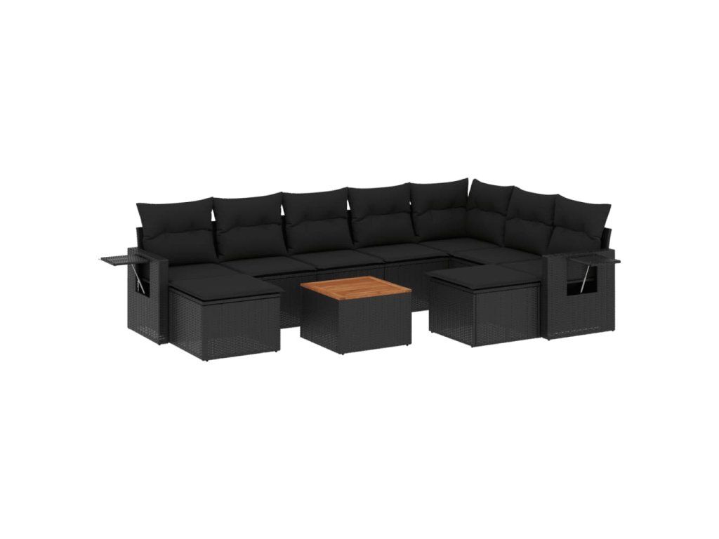 10dílná zahradní sedací souprava s poduškami černá polyratan 3257175