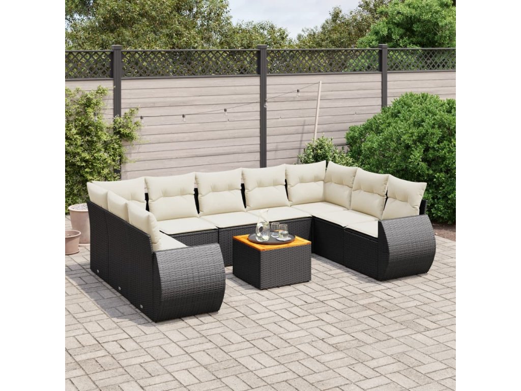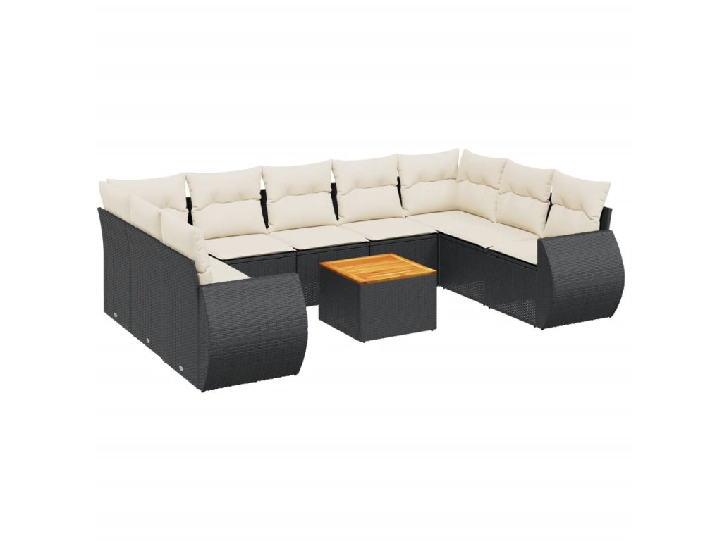 10dílná zahradní sedací souprava s poduškami černá polyratan 3257477