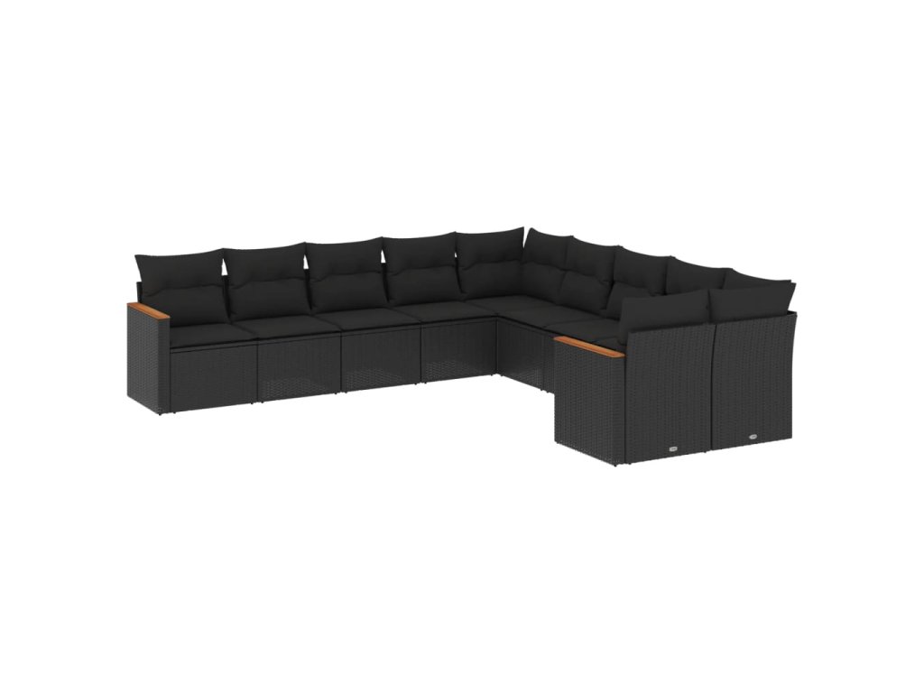 10dílná zahradní sedací souprava s poduškami černá polyratan 3258751