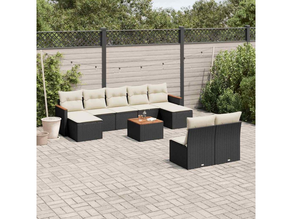 10dílná zahradní sedací souprava s poduškami černá polyratan 3258780