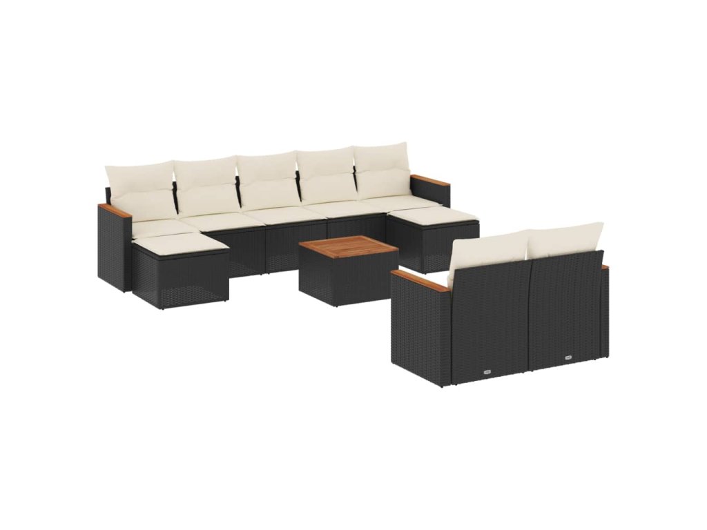 10dílná zahradní sedací souprava s poduškami černá polyratan 3258808